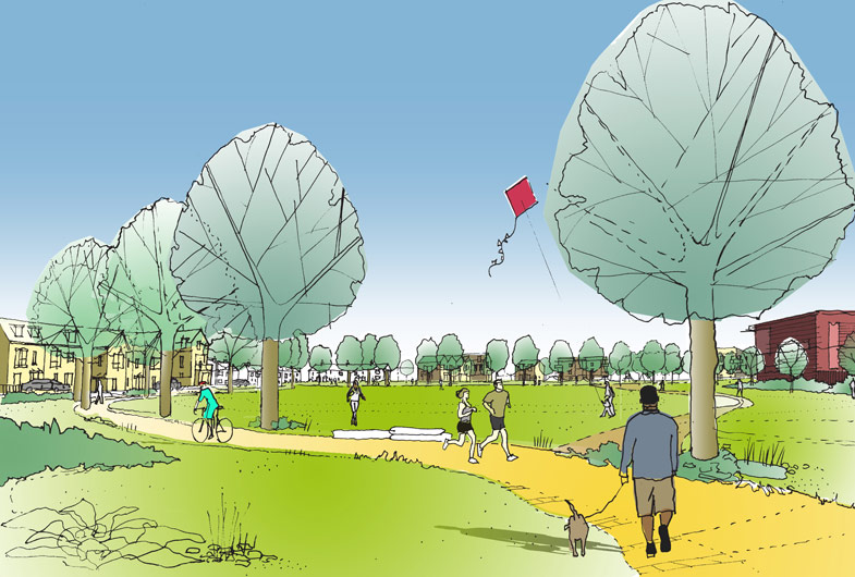 Initially our scheme was for 58 homes for Raven Housing Trust on one key action area, Longfield Crescent, which led to a commission for masterplanning the entire ‘community hub’ area. Our remit was extended again to encompass the adjacent De Burgh site for Surrey County Council, where we prepared a masterplan study for options of 300-500 homes.